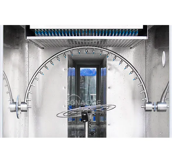 Камера для испытаний на водонепроницаемость от дождя – определение класса IPX34 соответствует IEC 60529: 1989 +A1:1999 +A2:2013 "Степени защиты, обеспечиваемые корпусами (код IP)", GB4208-2017 "Уровень защиты корпуса (код IP)".
